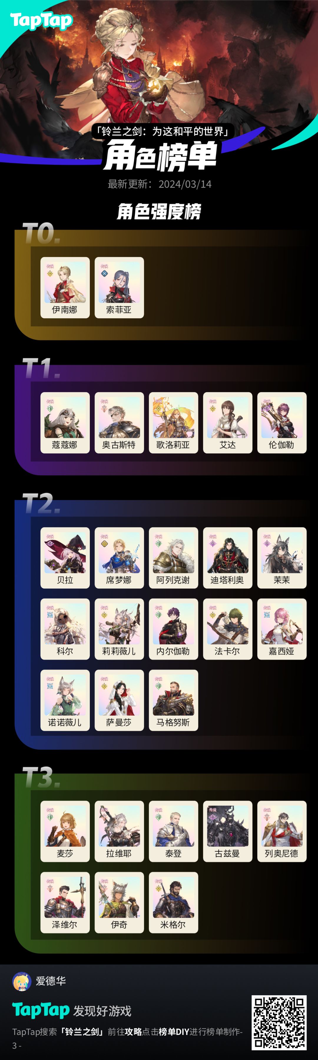 【铃兰之剑】史诗角色梯度榜(文末福利)