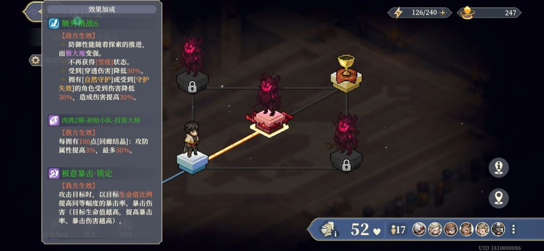 只讲近战玩法,远程不好用。 一、武器 1、拒绝之锤 满星专武都未必有这个好。专武是给远程玩法用的。 二、装具 1、守护正义之盾 2、囚笼面具 都没有的话。可以带沙漏或礼帽来补充抗性。晶爆也凑合。 三、塔罗 1、愚者 2、隐者 3、节制 四、刻印和词条 宝剑+权杖 物攻>生命 五、技能配招 三星前 1、分工合作+非凡吨位+傲人智慧 2、分工合作+非凡吨位+正义重锤 五星前 分工合作+非凡吨位+闪电偷