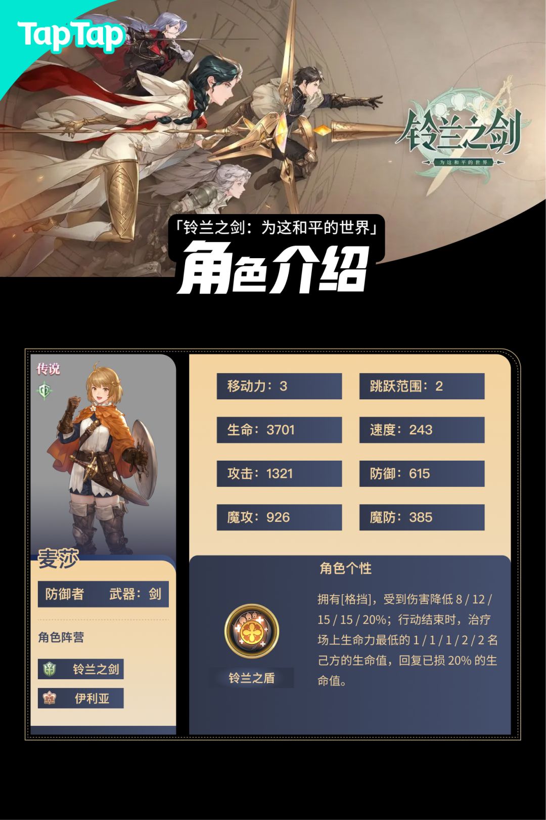 原稿时间:2024年12月9日:初始通用流派 一次修改:2025年1月6日:增加治疗流派 二次修改:2025年1月25日:增加击退流派 终稿时间:2025年1月31日:重新修整排版 (注:麦莎攻略完结,建议全文阅读。) …… …… 【萌新攻略】铃兰之剑新手问答贴: https://www.taptap.cn/moment/612002385404887585?share_id=6b8b2b68f4
