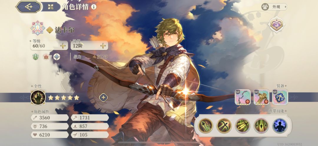 作为玩家持有度最低的角色,同时也是门内玩家使用最普遍的免费角色,也就不难理解为什么法卡尔是相对冷门的英雄,他作为前期罕见的远程角色,同时也有游戏里最不讨喜的人设,导致人气不高,存在感薄弱,甚至于前期的角色强度榜都经常被玩家忽略而没有上榜,少数有法卡尔的玩家在开荒的前中期用的非常痛苦,有诸多例如缺乏伤害,射程短,怕近身等硬伤,法卡尔比较类似Dota 里的小黑,属于成长曲线偏后期的角色,法卡尔的机制非