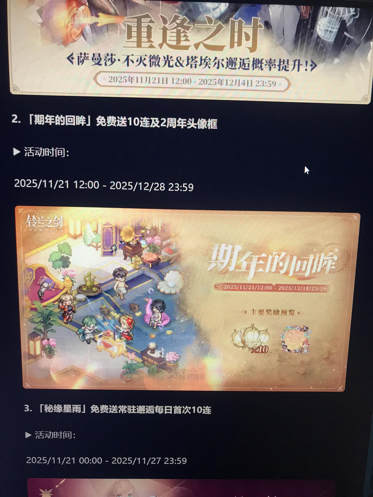 还是最爱的大索镇楼!祝大家中秋快乐!抽卡一发入魂!希望今天能领到心动发的中秋节邮件,盲猜300。记录一下我的这一期叶迦内抽卡:一:132抽1个莉拉(新)、2个叶迦内(第二个叶迦内是两发单抽出的)、1个丹妹(抽到时3-4了,现在正在跑5星)。二:专武45抽5星。追忆升星礼活动共计返30抽。活动期间叶迦内可以跑到3星,共计返铸型