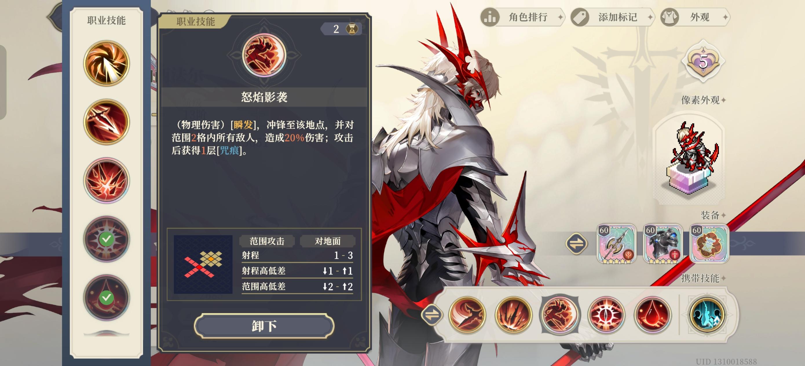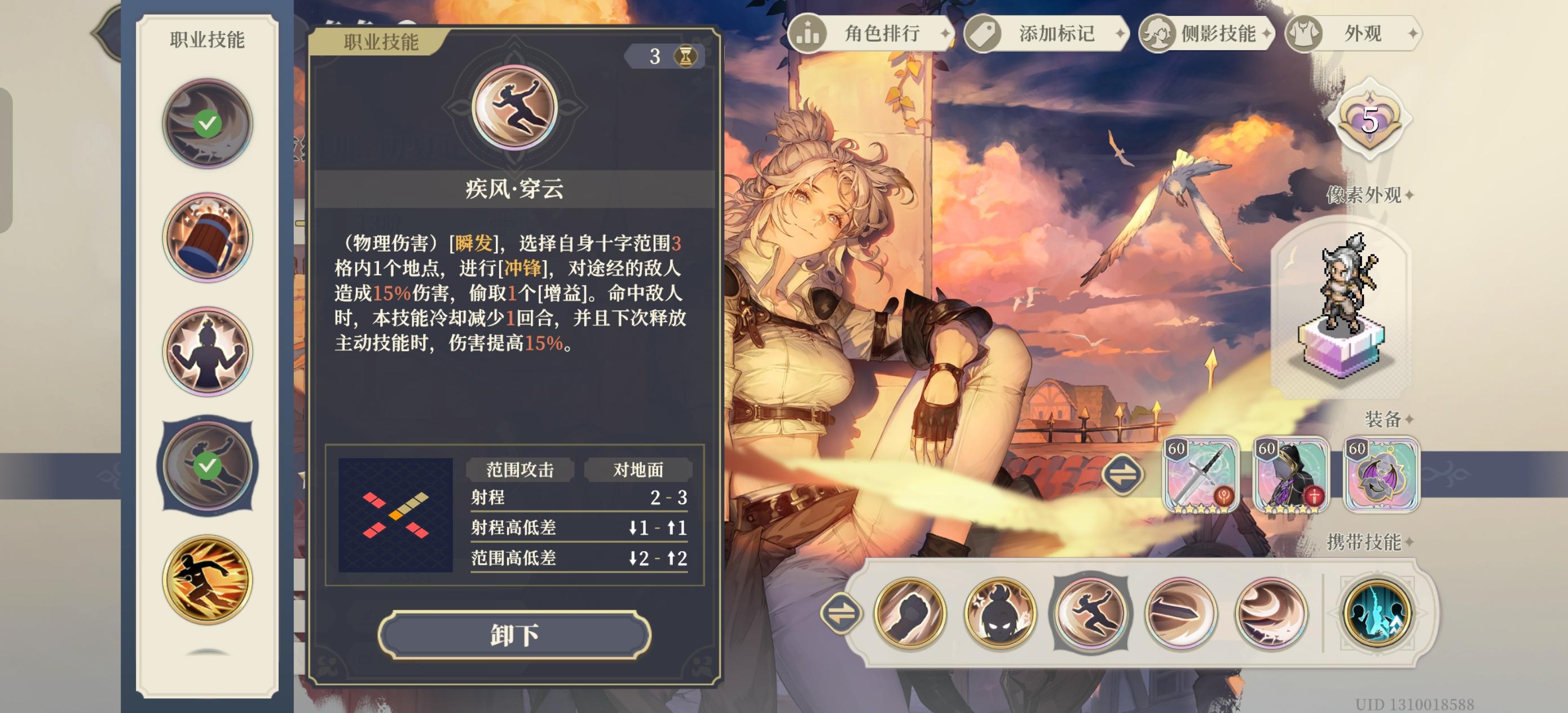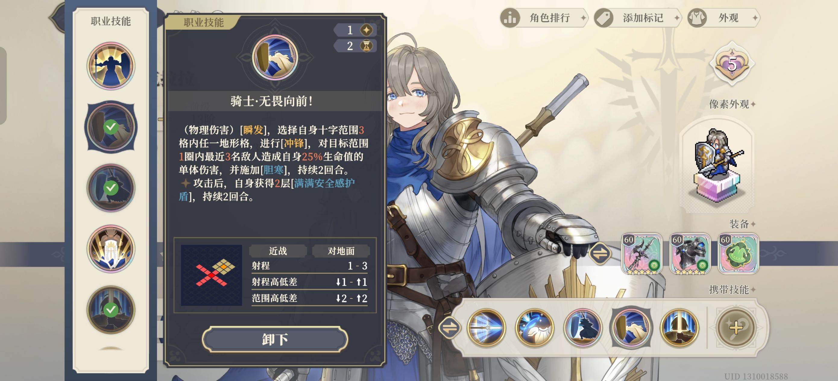 开局刷减CD的buff,然后用拥有位移伤害技能且CD少于或等于2的角色,就可以多次释放瞬发伤害技能了(不是无限放,好像每回合只能放20次)。至于角色,我只发现这三个角色技能好触发,各位要是发现有其他的角色好触发也可以在评论区补充。SP拉维耶虽然技能是3CD,但只要命中敌人就能减1CD。缺点:伤害略低,自动如果索敌范围没敌人就不会继续放技能。优点:自动不会被小台阶磕到脚。克拉拉伤害坦度