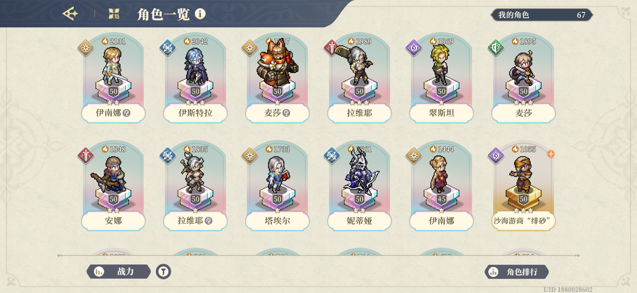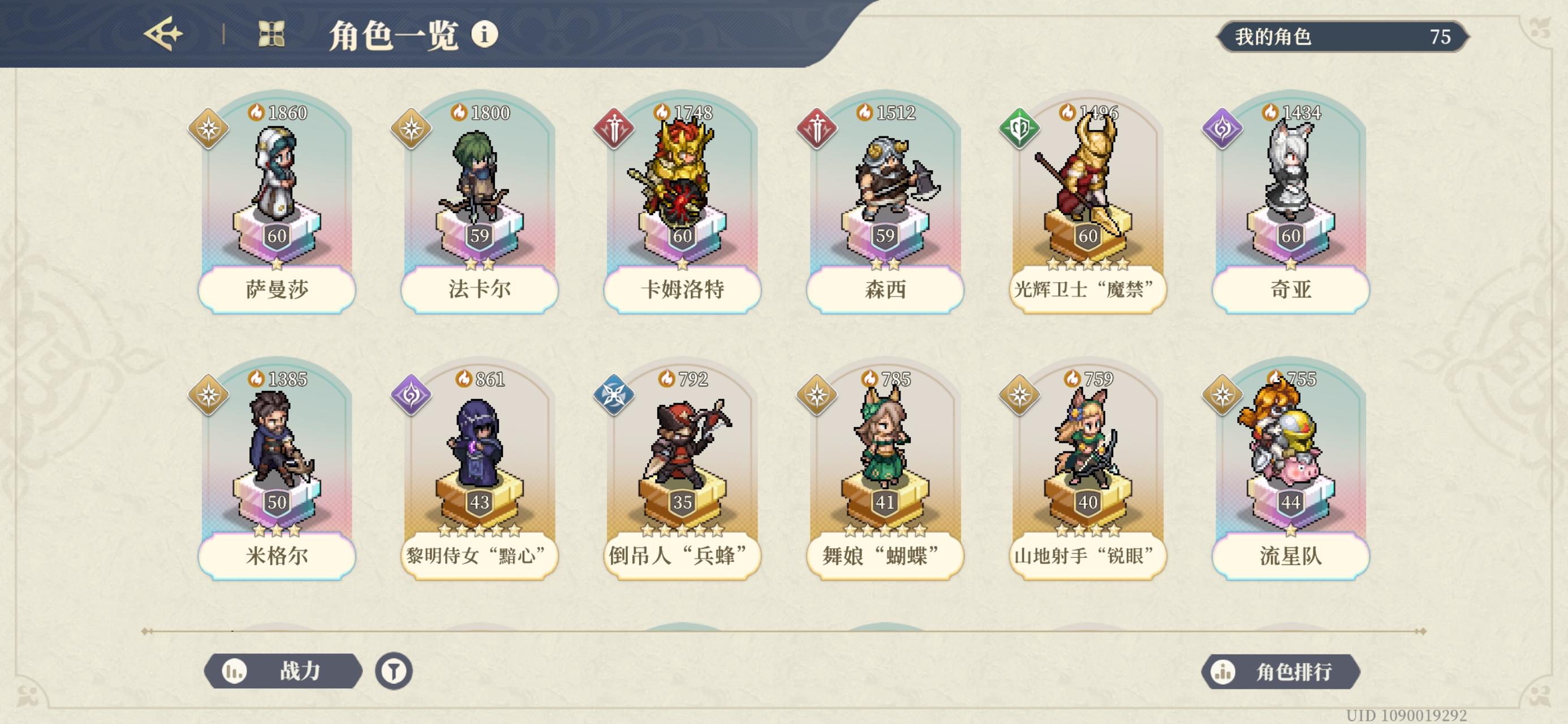 如图,我传说只有上面这些,由于好久不玩现在都不知道可以练什么了三个神兵试炼都才55,60的都没打。好多角色都没有,比如sp伊南娜,歌洛莉雅这些,感觉打副本有点吃力,怎么打好一点,有没有大佬帮忙提供思路