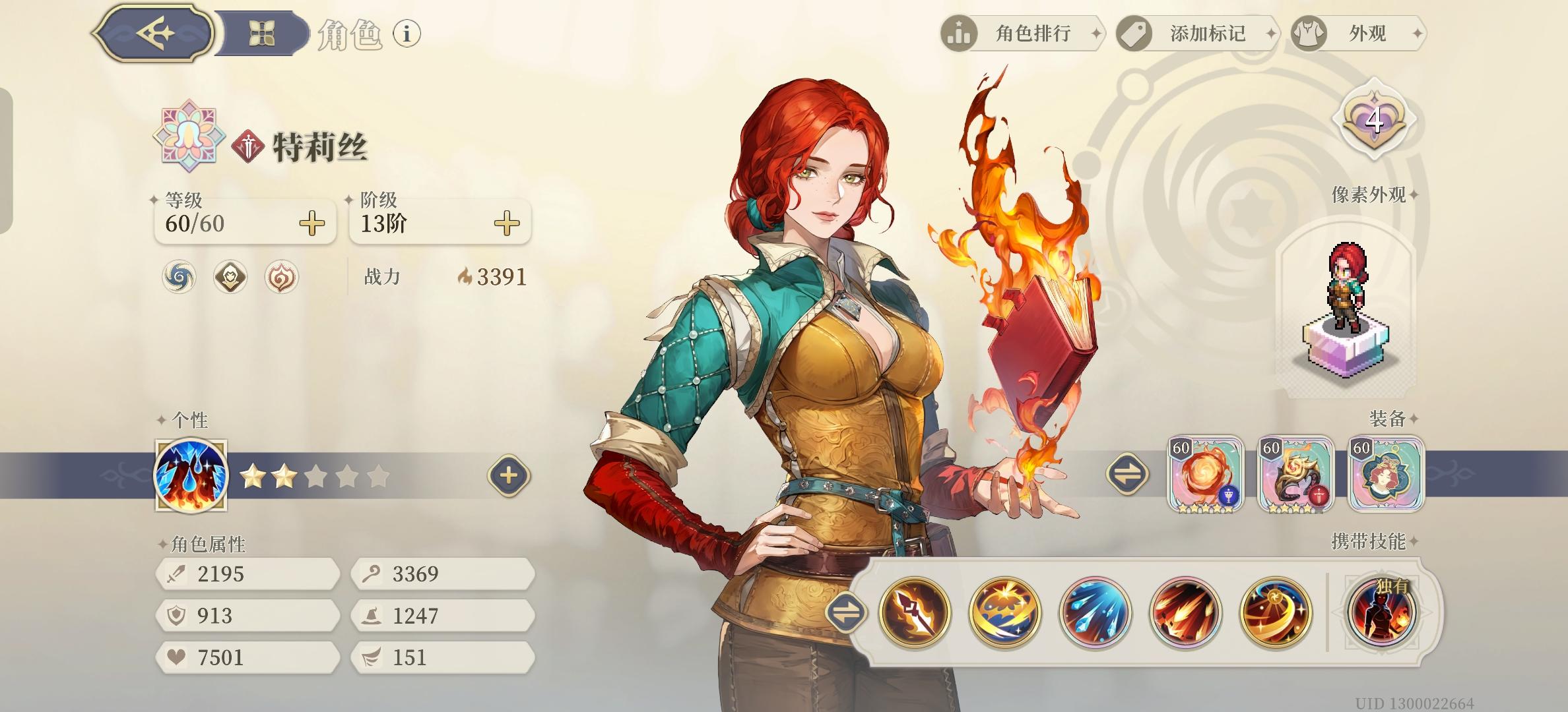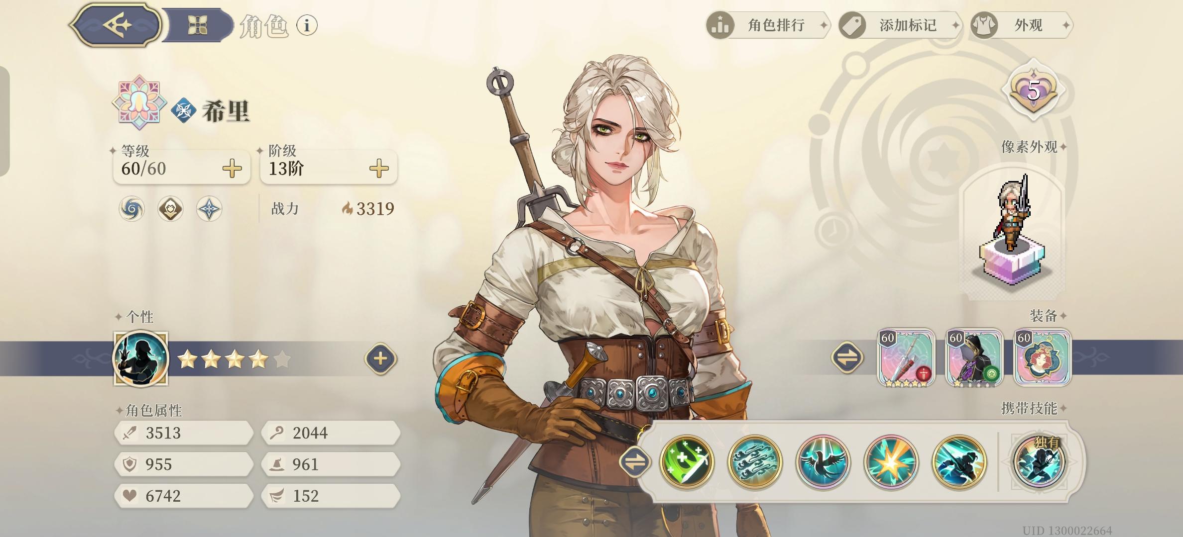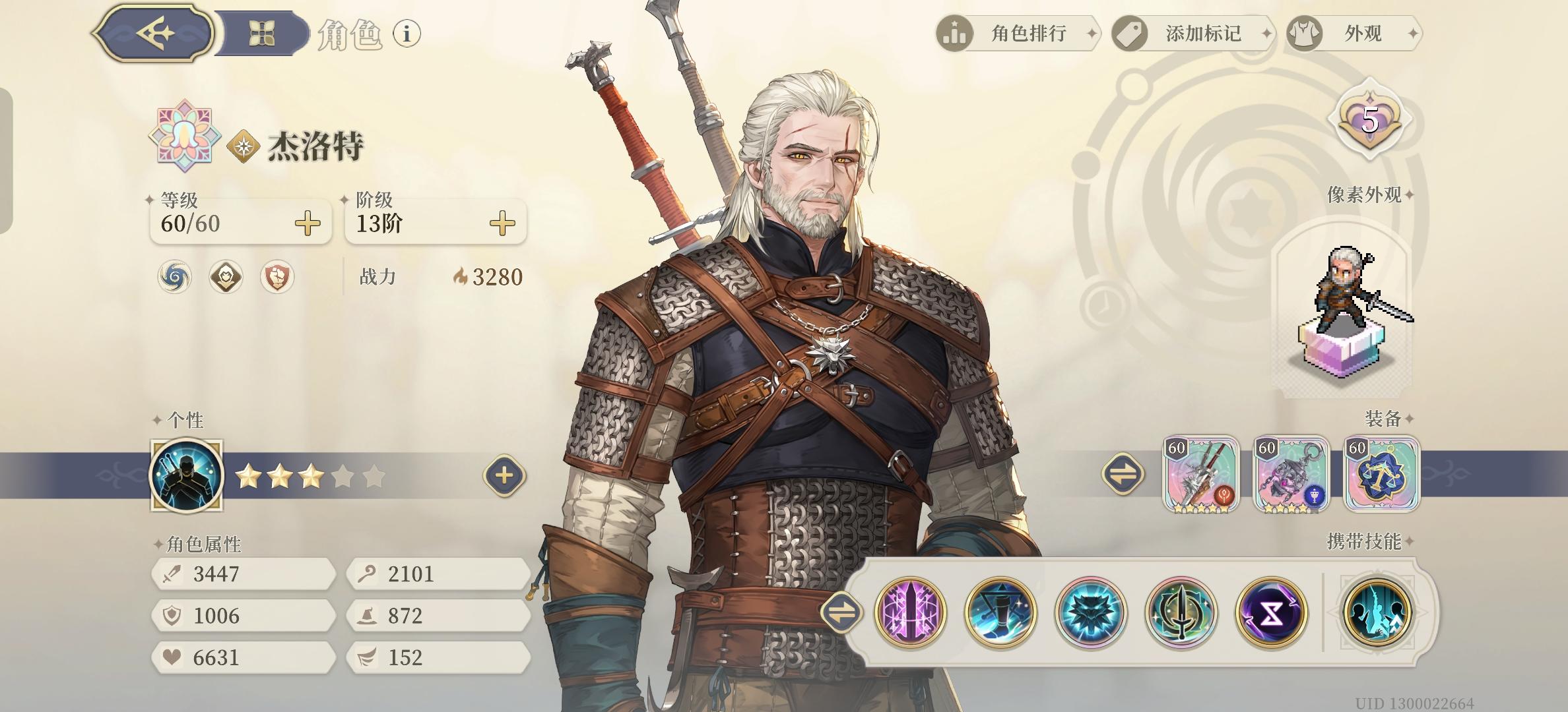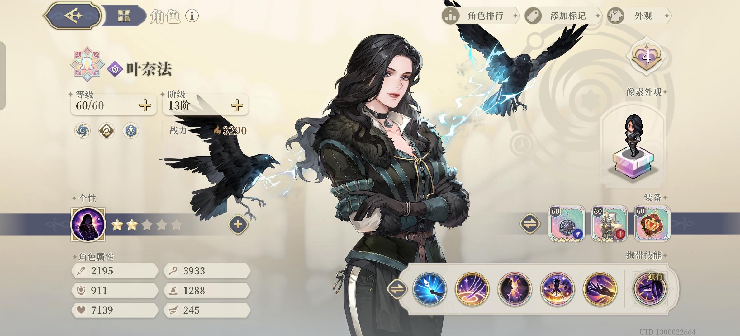 从10月20日开始30级的新号(主页可见),到今天60级通关,一步步的等级提升,装备培养,塔罗培养,天赋点选,真的很有成就感。也终于打完了目前铃兰所有常驻的最强挑战。 通关图: 特点强调,今天最后的力量认证9-10,用了最高攻击力2900,战力2500的主c角色就过了!(傲娇)⭐养成练度: 1.一个五星,最高战力3450,大部分为2000多战力。可以做个战力参考,让大家明