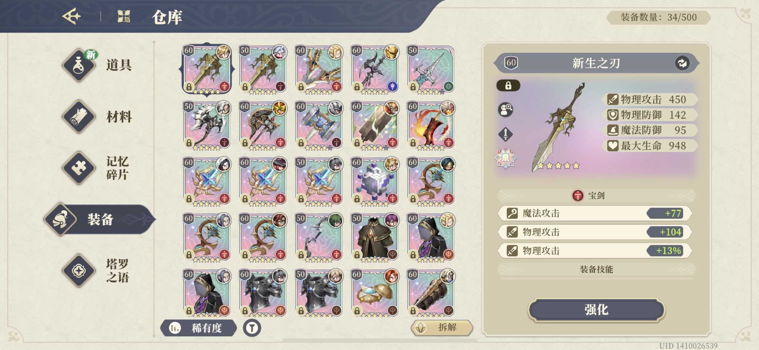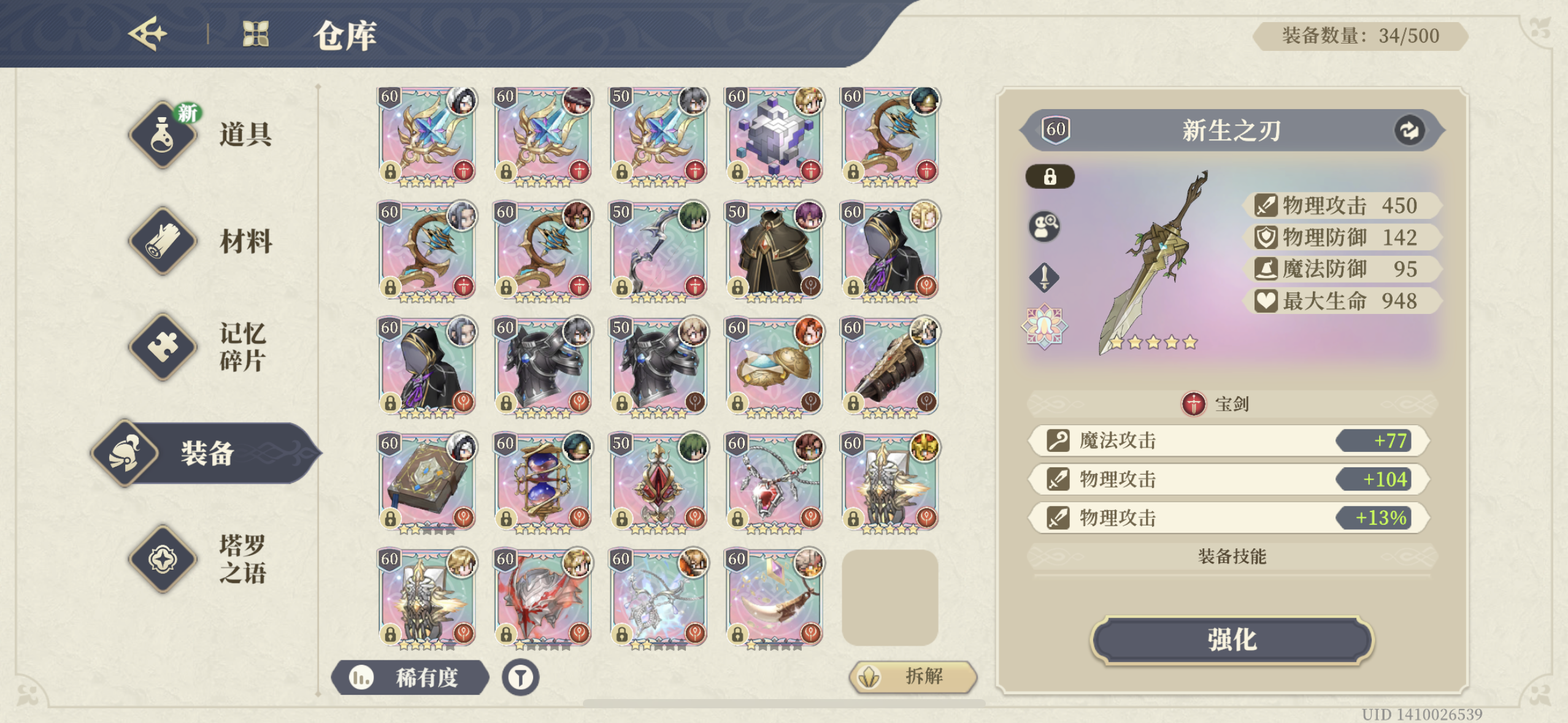 此号是五百收的,玩了三四个月,打算出了,号上还有二十抽,武器池十抽,门内资源还有很多,没怎么打,强势的角色差不多都有,图片中展示的武器都是带刻印的(没刻过的武器还有很多),主要在于一把五星的不朽炽炎,五星的血精石护身符,五星的老登盾和一只四星的老登盾,还有大麦的四星专武,天赋都是不朽,有两个毕业的魔术师塔罗,一个物攻一个魔攻,想卖个 520 怎么样🥹🥹🥹,评论区有想买的可以留言,不知道这个价格如何