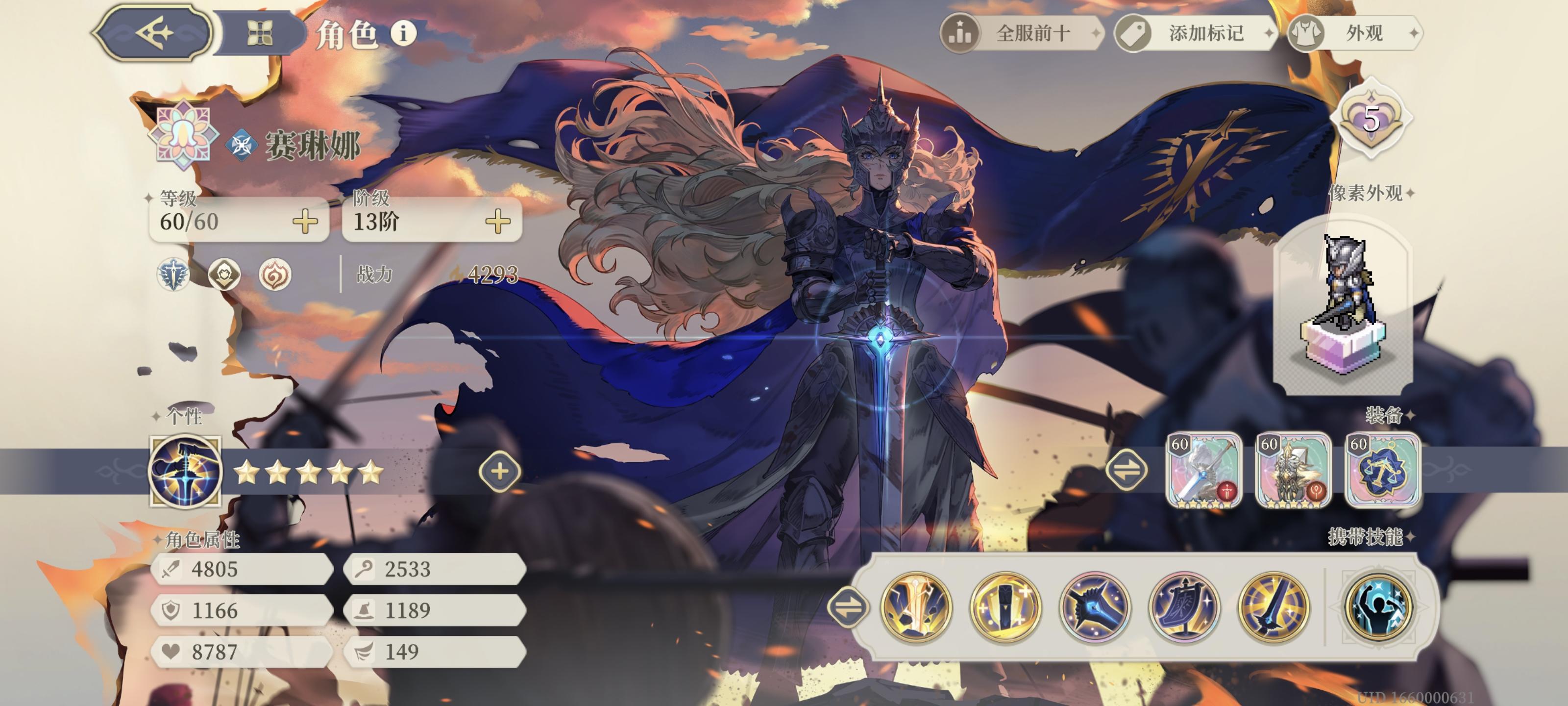 从10月20日开始30级的新号(主页可见),到今天60级通关,一步步的等级提升,装备培养,塔罗培养,天赋点选,真的很有成就感。也终于打完了目前铃兰所有常驻的最强挑战。 通关图: 特点强调,今天最后的力量认证9-10,用了最高攻击力2900,战力2500的主c角色就过了!(傲娇)⭐养成练度: 1.一个五星,最高战力3450,大部分为2000多战力。可以做个战力参考,让大家明