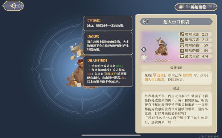 暴击爆伤,加速,在移动,回血,加buff,还能给队友提供个顺发伤害的技能。除了没有回能几乎是全了吧,但是又都能找到替代的人,新手抽一个老辅助很多都不用补了。但是作为老玩家还在考虑抽的价值大不大。。。装备感觉比前面专武要好的,其余人的触发物也挺多的,不限定小羊一个。主要还是个防具,通用。ps:反应里居然藏了个200速度。。。目前PVP应该是首发了,但是这游戏PVP又没啥玩的,除非官方后续要开放P