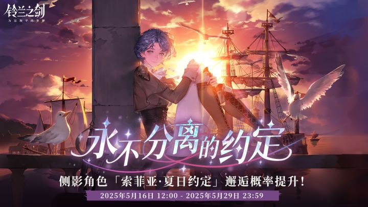 亲爱的团长:「永不分离的约定」初遇限时邂逅将于 2025/05/16 12:00 - 2025/05/29 23:59 复刻,侧影角色「索菲亚·夏日约定」邂逅获取概率将大幅提升!✦ 此邂逅属于「初遇」,与同类型邂逅的保底机制共享。✦ 更多邂逅信息请待开放后,点击游戏邂逅界面右上角「详情」按钮进行查询。✦ 官方公众号:铃兰之剑✦ 官网游戏下载:↓↓↓