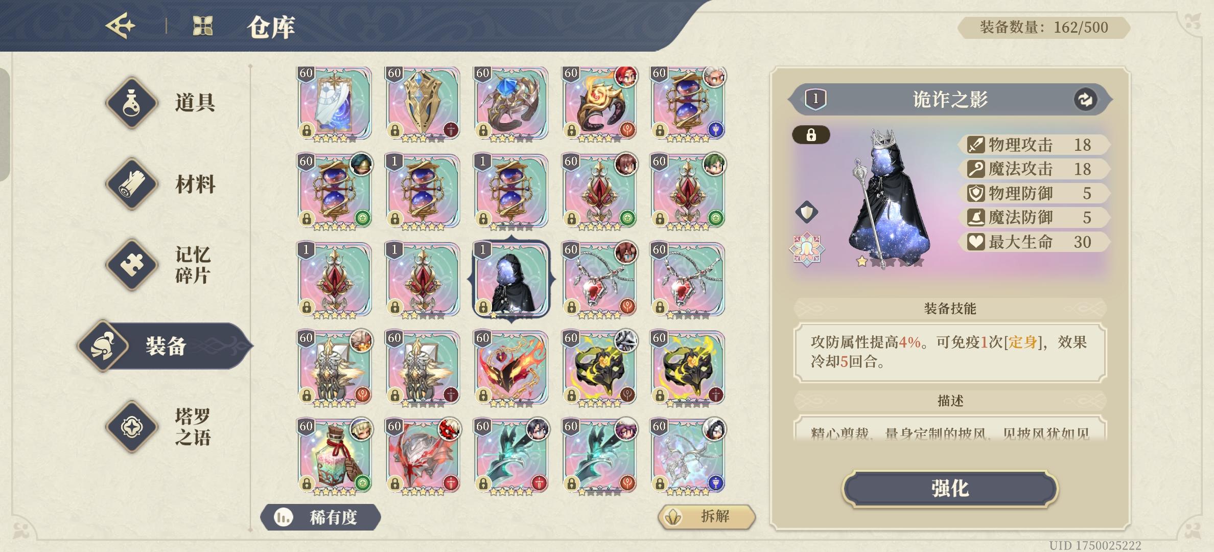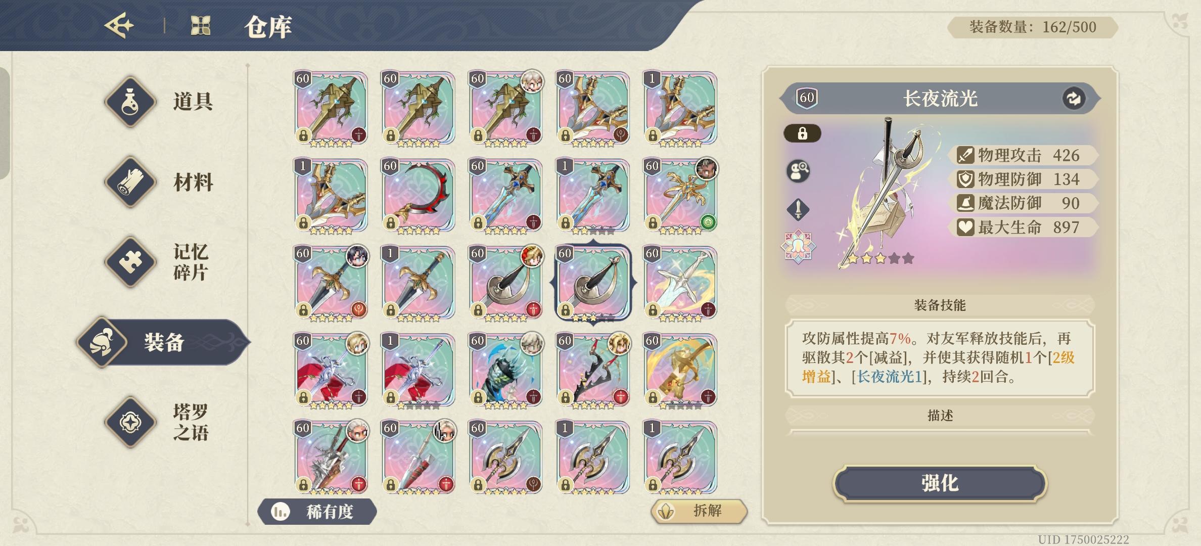 操作不行,也没换权弈之锋,第二个神兵换了11把8把都是长夜流光,老倒霉蛋了诡诈之影还是打完出鹿首精换出来的,没有这东西打不了第二只鸟boss。