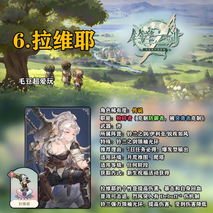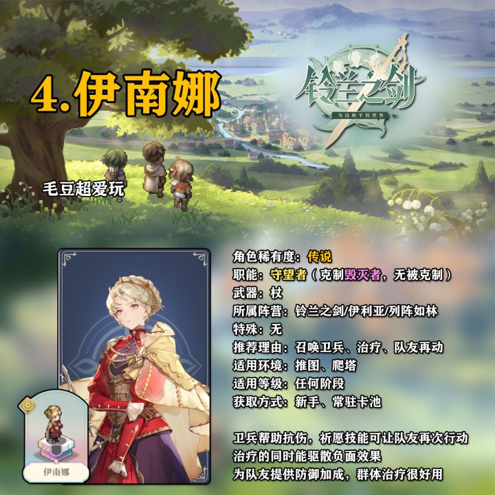本期视频为各位带来铃兰之剑全角色节奏榜 强烈建议先看开荒攻略避免踩坑,本视频照抄点法即可发挥角色最大功效~ 觉得视频不错的话,就点赞关注加转发支持一下吧~求求惹~#铃兰之剑攻略征集#攻略#游戏安利#游戏推荐#游戏讨论#铃兰之剑