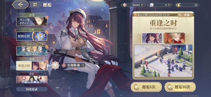 亲爱的团长:「重逢之时」限时邂逅将于 2026/04/10 12:00 - 2026/04/23 23:59 开启,角色「卡姆洛特」、「克拉拉」邂逅获取概率将大幅提升!✦ 此邂逅属于「重逢」,与同类型邂逅的保底机制共享。✦ 更多邂逅信息可待开放后,点击游戏邂逅界面右上角「详情」按钮进行查询。✦ 官方公众号:铃兰之剑✦ 官网游戏下载:↓↓↓#铃兰之剑 #冰原之心