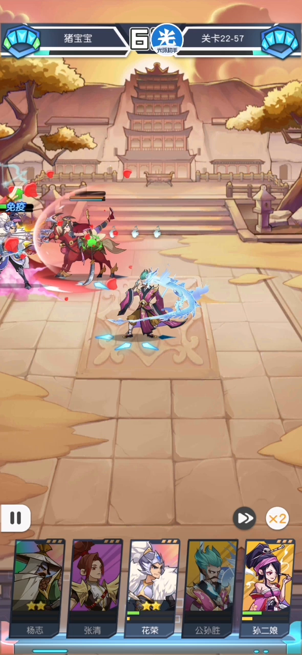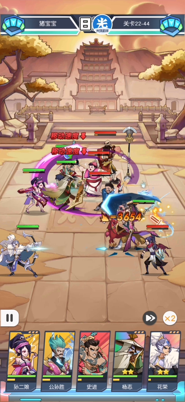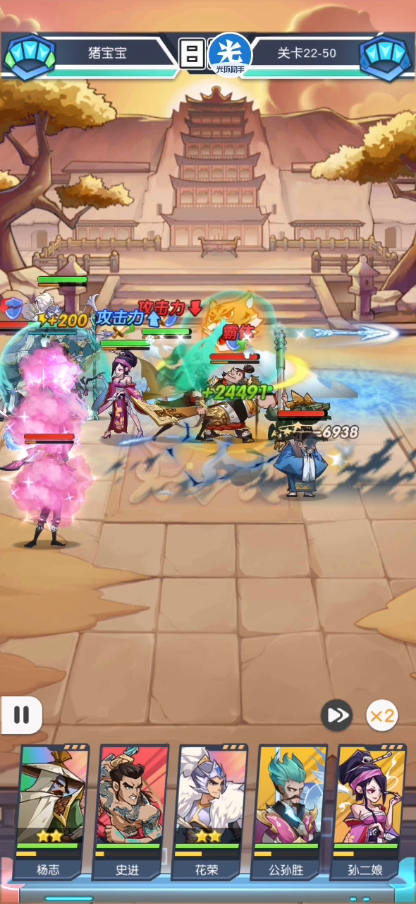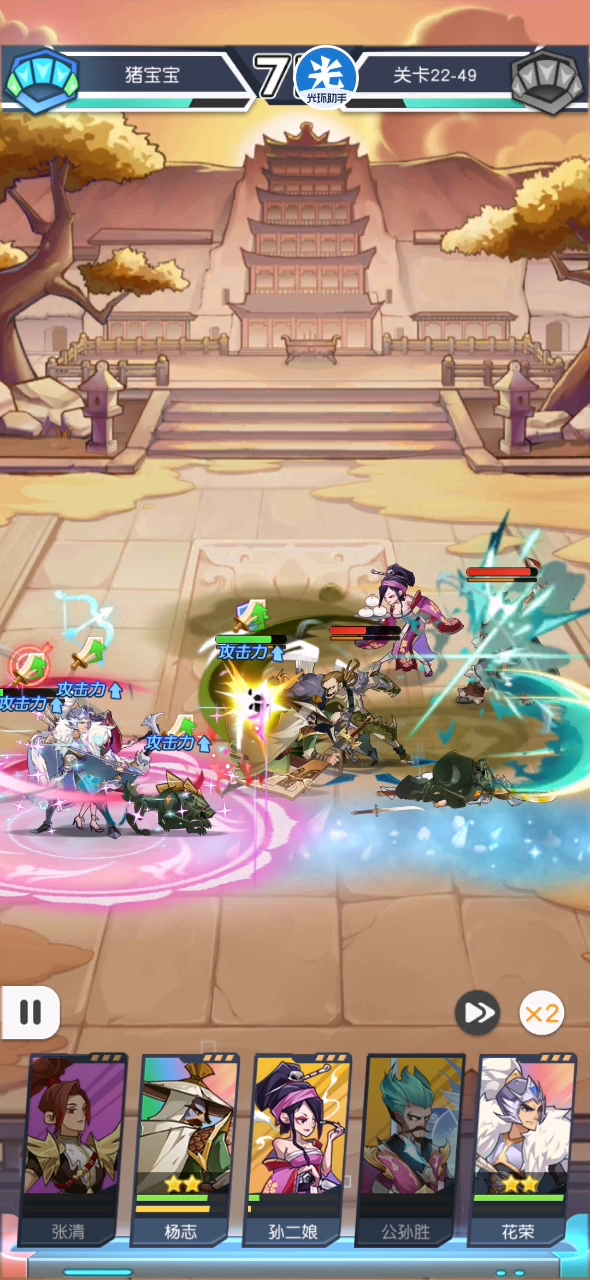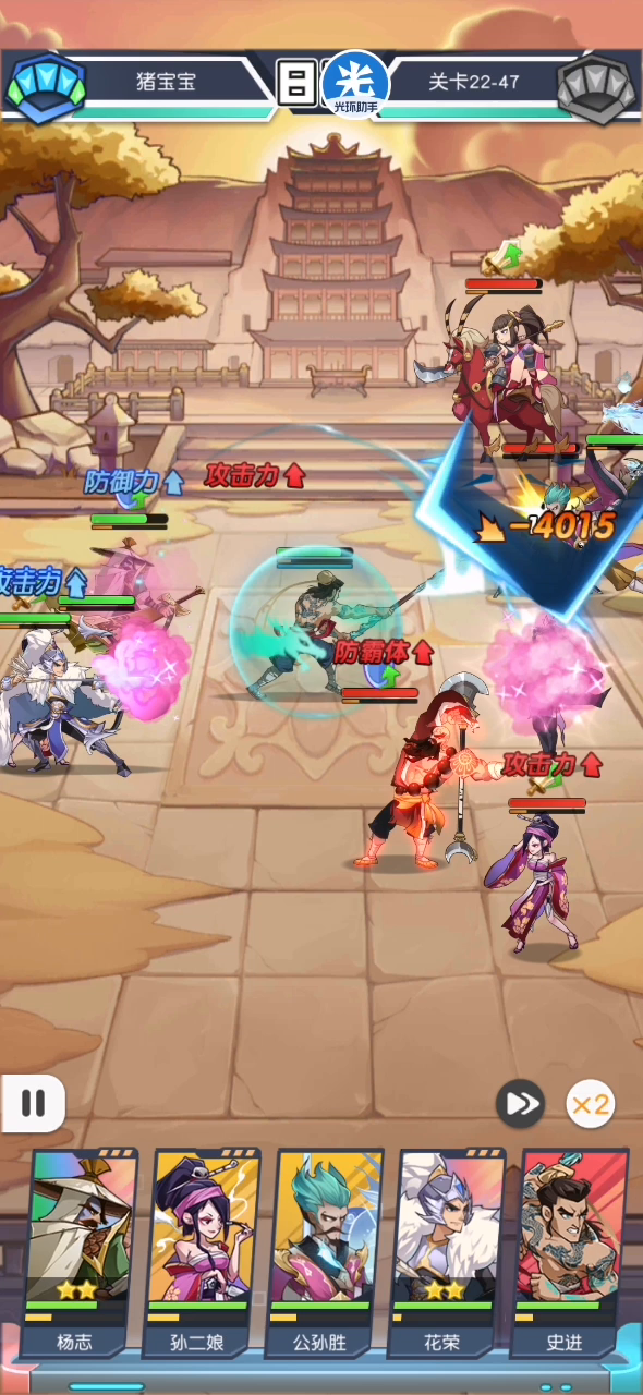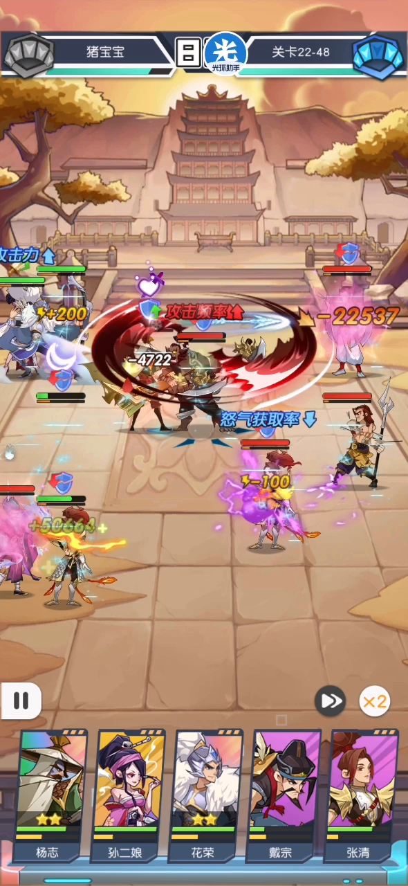 这里的话我一开始是把公孙胜对位朱武,发现鲁智深打我前排太快了,根本没办法让花荣有时间开大,所以就尝试了一下花荣对位朱武,发现结果还不错,真的是有点瞎猫碰上死耗子