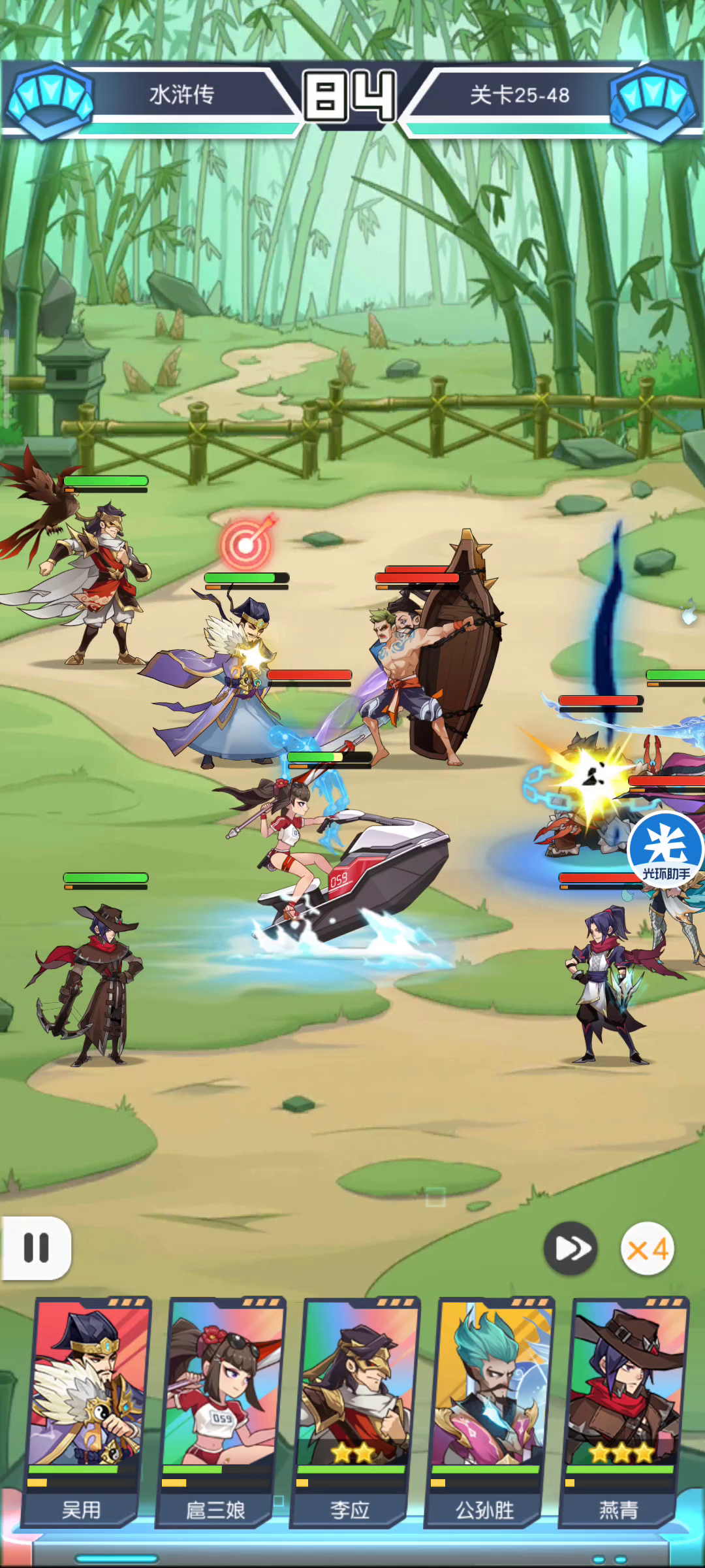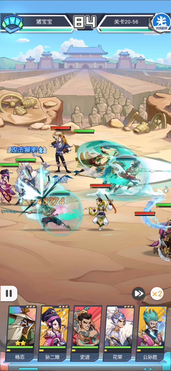 这里的话,我先说一下我的情况吧,杨志专属10,史进开了专属,多试几次就过了,就是看看花荣能不能多暴击