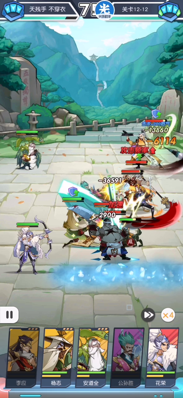 0氪!梅花你们要的12-12来了!试了2个多钟才试出来!很难真的!杨志跟花荣,必须要有肉顶住前排才能输出!不然基本没输出位根本没得打!
