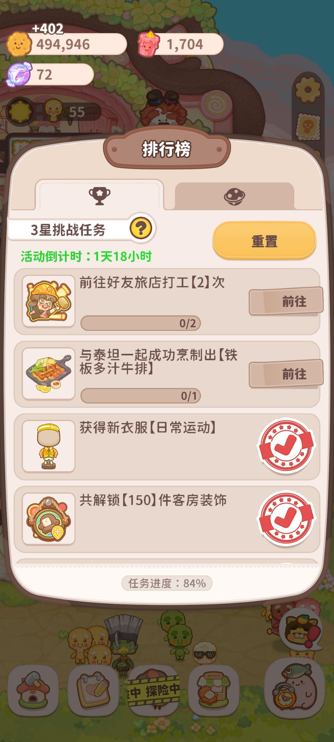 简单总结一下游戏过程中容易遇到的问题,电脑端图片上传比较麻烦,这里是纯文字版。有问题也欢迎来问!!!!!(我承认我就是闲的) 一.人气值如何获得。 1.购买升级各个房间家具设备。 2.每日任务会以隔天的形式,完成任务给予五点。 3.达成一部分成就,例如赶走偷吃饼干的富贵。 4.解锁或升级餐厅的菜品。 二.主线任务中特殊汤料任务如何完成。 1.温泉界面右下角研究笔记至少解锁至第二页第一个。 2.找温