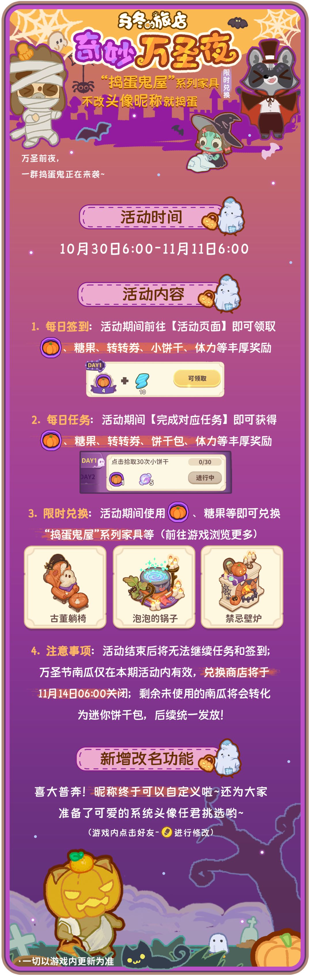 温泉玩法新增道具“力量香皂”“滑轮拖鞋”“野生浴盐”“幸存者牙膏”“山羊的屁”一定程度上降低难度哟!还有大家期待已久的客房装饰“深秋红枫阳台”“秋日海棠”带你回味晚秋美景!