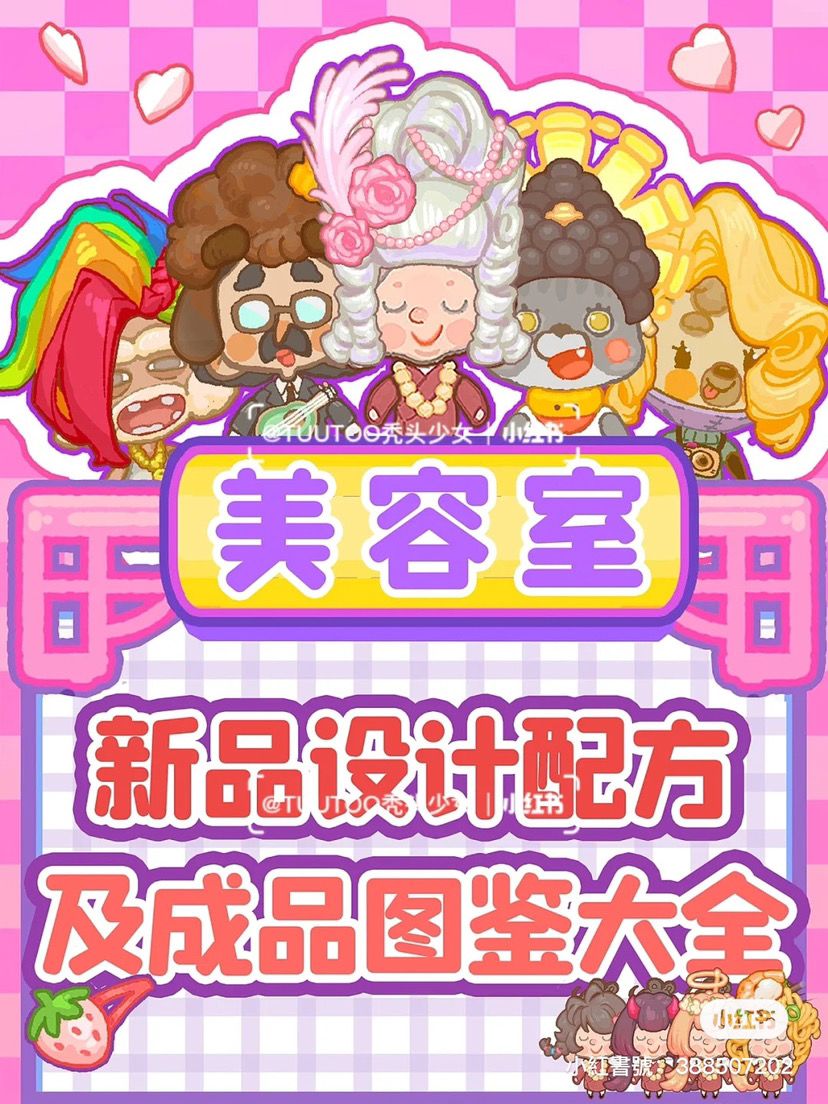 ❗️一共40个方案❗️每个方案必得设计心得 ❗️前期设计师实用性:乌冬>泡泡>泰坦>托尼(当然🌻多的除外) ❗️挂机可每隔30分钟去看广告收一次🌻❗️🌻>500可以选择泡泡降低费bu用 ❗️菜刀需要人气达到8000才能解锁,有些臭宝一直刷不出新的可以先去提升下人气解锁了再设计(8000以上的当我没说)如果是差几个发型or面膜还没刷出来的可以看一下⬇️文字版🌟文字版配方 🌟少女波波头:草+刮胡刀/卷