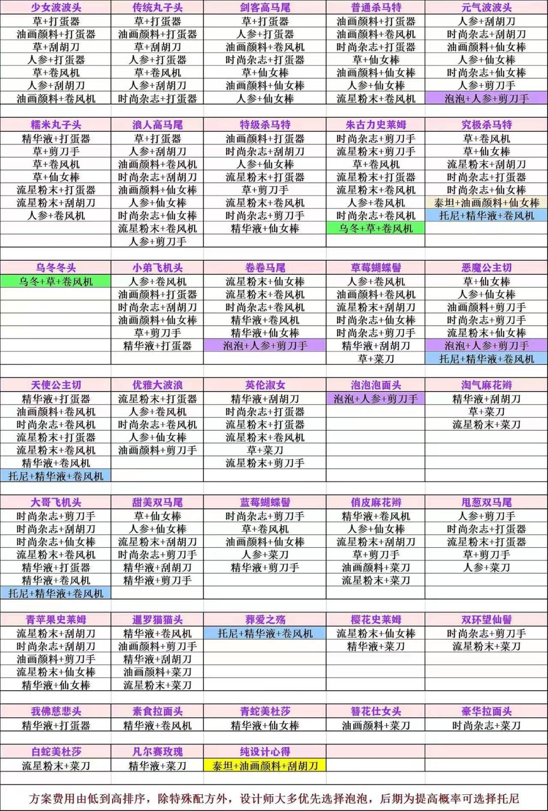 继4.6.0版本后,全部的配方都在这了[鄙视R] 估计玩到最后一次更新的臭宝们🌻都不少了吧[暗中观察R] ps:(有个诀窍,今天要是心情特别好,运气也会很好[赞R][赞R][赞R][赞R][自拍R][萌萌哒R]!!!) ❗️每个方案必得设计心得 ❗️前期设计师实用性:乌冬>泡泡>泰坦>托尼(当然🌻多的除外) ❗️挂机可每隔30分钟去看广告收一次🌻 ❗️🌻>500可以选择泡泡降低费用 ❗️菜刀需要人