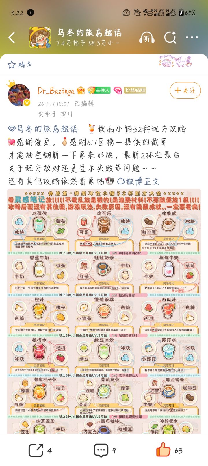 搬运🧣饮品小铺32种配方攻略