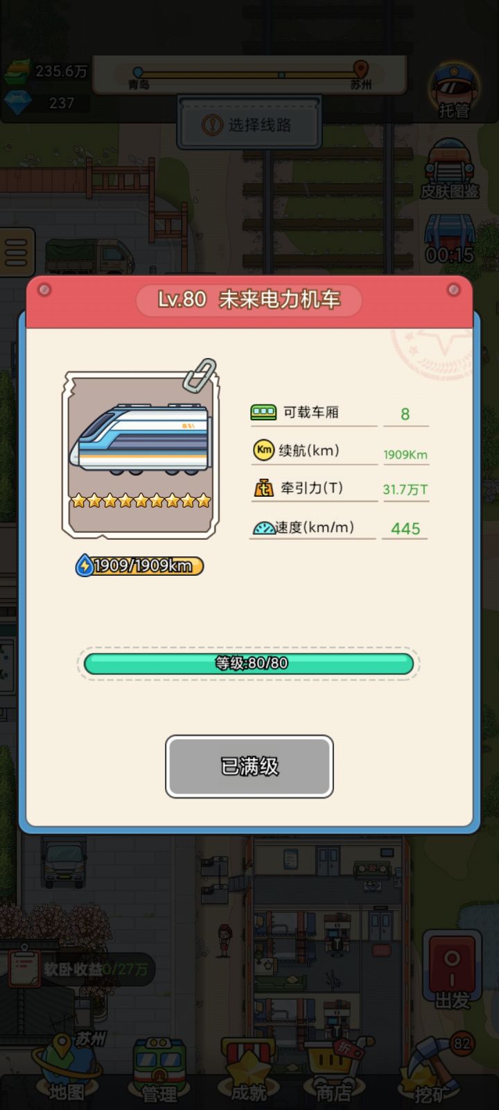 公测那天晚上下的,有时间玩一下,或半个小时左右上去领一下挂机收入(半个小时一次,一天十次也有一千多万资金了,视个人时间)!就三点一:除了自动托管其它可以不看广告!二:跑市场就主升车头,辅升货和矿车!三:拉人就主升客车,有多余的钱就升车头!个人感受:车厢不用最求满等级,货矿32级出六个仓位就行,头等6人,软卧8个,硬座18个就行了。再升级就是浪费钱!车厢升⭐️:一星车厢和三星车厢升级所需