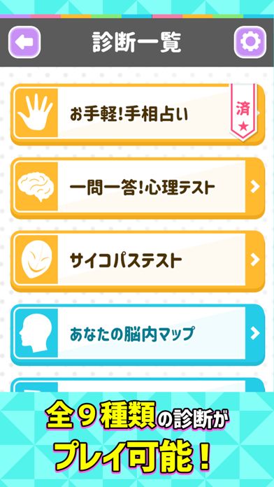 全9種類の診断・占いが完全無料でプレイ可能!