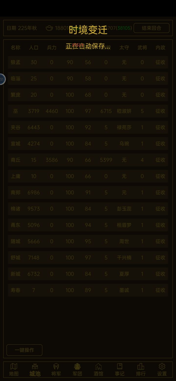 看了几十个广告,好不容易前期发育起来了,突然卡我,怎么都搞不好(就点下一回合后,卡在“正在保存”那里,每次要退出重进才能进入下一回合,真无语),不想玩了