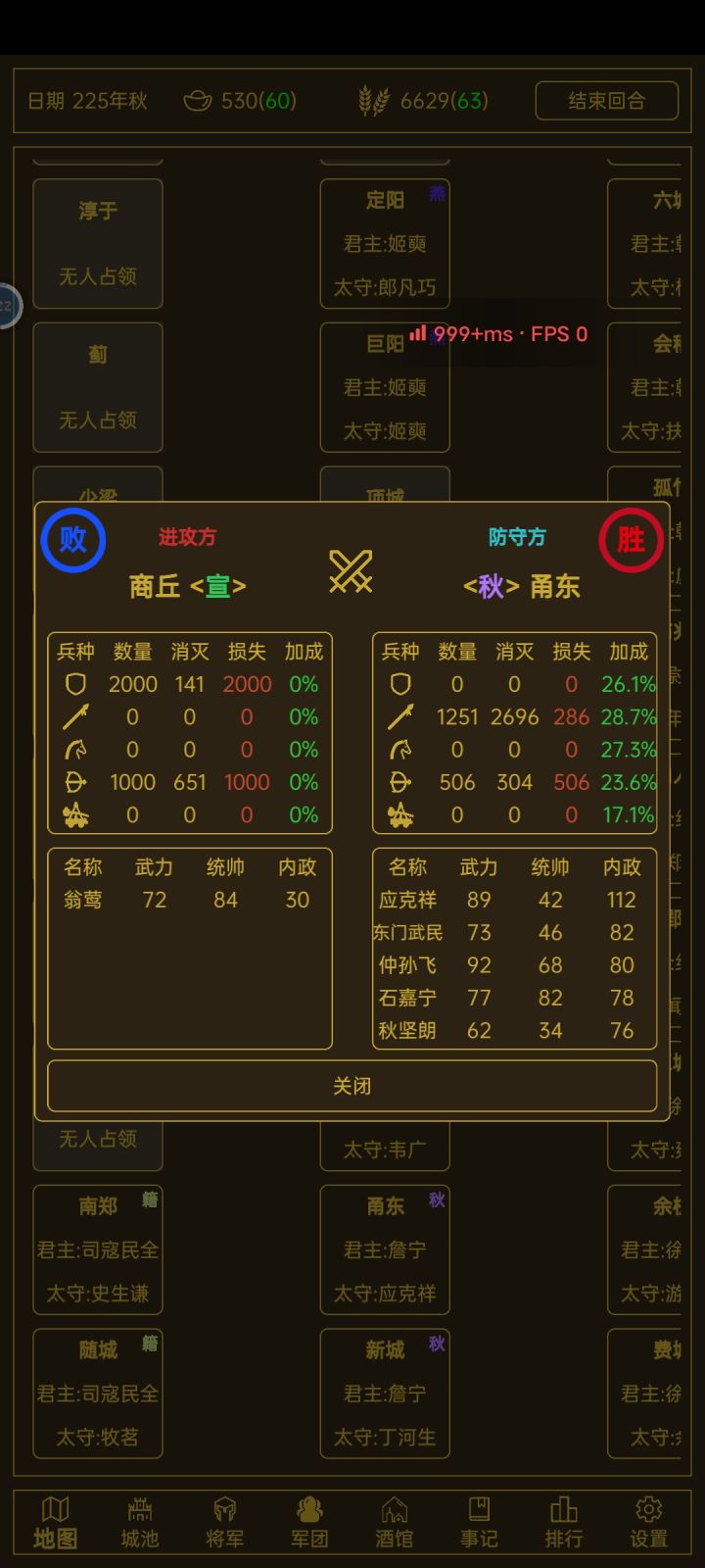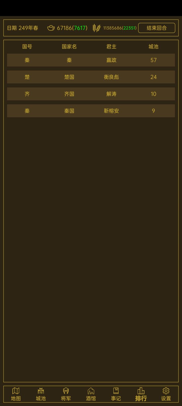 占叛乱城和空城,不断征兵累积到三万没碰壁,这一局算是初步奠基,稳住了。否则重开吧...