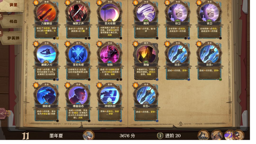 只是个人玩法,至于进度的话我是今早上8点20过的20,或许这个时间可以往前拉,但是有一系列原因(借口)导致今早上才过,不过不影响我分享的这套牌的强度 个人玩的比较混合,大概把游戏的周目分成三个阶段,第一个就是加自带诅咒卡前,第二个是加诅咒后加基础牌前,第三个就是既加了诅咒又加了基础牌。当然这是我个人的分类,方便说而已 第一个阶段比较简单,如果是萌新的话建议在第一个阶段也就是1-9周目找到自己喜欢的