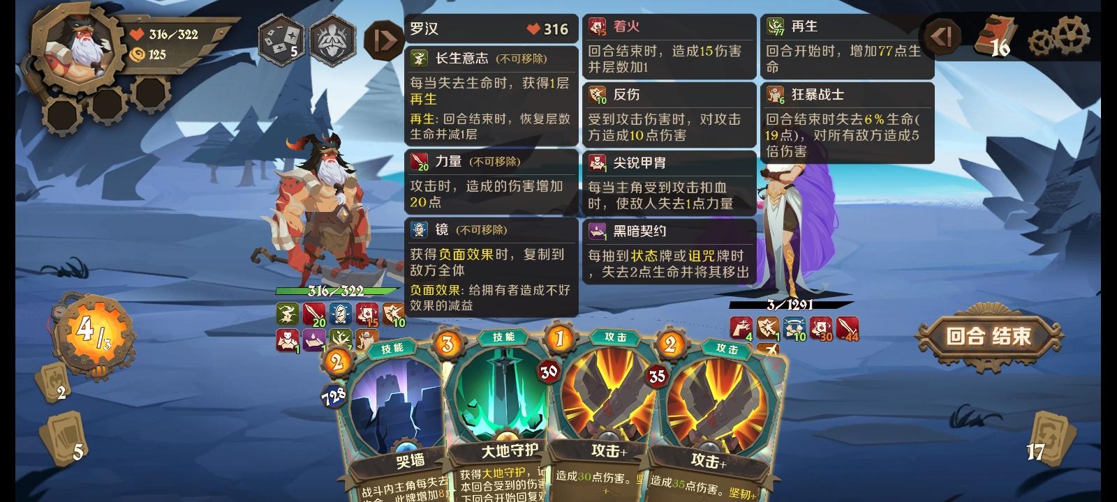 周一上午趁没人拿了个没啥含金量的第一,纪念一下 罗汉强度是真的高,再生魔王保血线,舍身保输出,杀就完事了 同时抓牌思路也很简单,删防抓攻,把防全删了换成高攻击牌,猛击跟双收割是用下来输出最高的牌,一回合两三百,同时遇到残暴也可以拿配合舍身回血非常强 舍身要求不能出防,那么救赎一层无甲便是这个流派的最佳防牌,高难度有点火破无甲,还需要驱散 这套是第二层开始起飞,天赋送了个双倍能力,阵营奖励直接把打击
