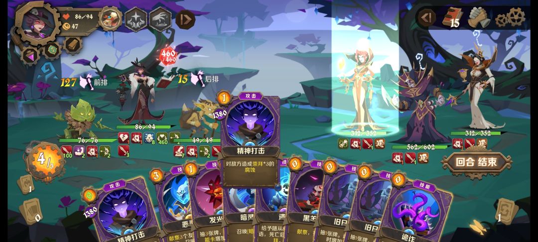 没啥好说的,来牌就抓,不用放弃不用替换,卡组越厚,伤害越高,给Key牌打上先机符。 起手:暗雾>标记(暗雾效果,标记翻倍2次)>逆鳞>倒流(把逆鳞拿回来)>逆鳞 逆鳞伤害取决于卡组厚度(天赋:获得卡牌数量的反伤) 简单粗暴,之所以召唤伙伴,为了初始能量点,方便起手打一套,精英基本直接秒,BOSS一套下来也残了,西格妮站前排,多拿防御和过牌随便混一下,BOSS摸你就自己反弹死了