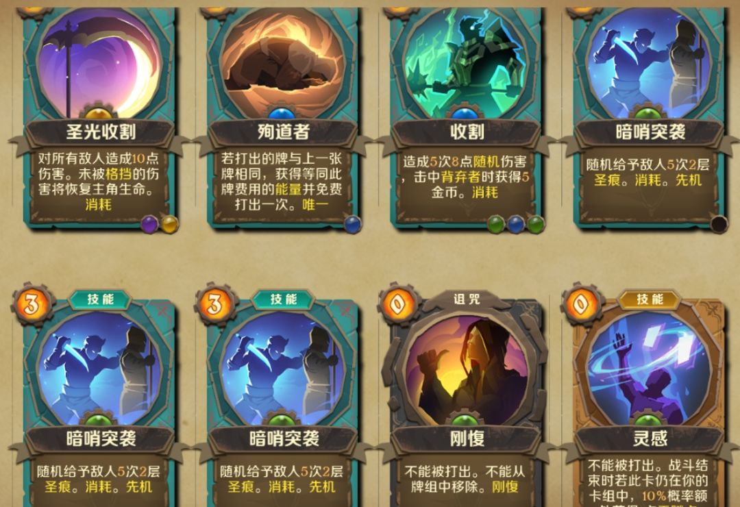 核心卡组《精神伤疤》镶嵌先机符和《狂怒仇恨》镶嵌保留符,为了应对多小怪《乱舞》也可以拿,其它的卡要增加烙印的就行,回血靠天赋,秘技卡我带的亢奋,前期清怪,详细攻略官方有。