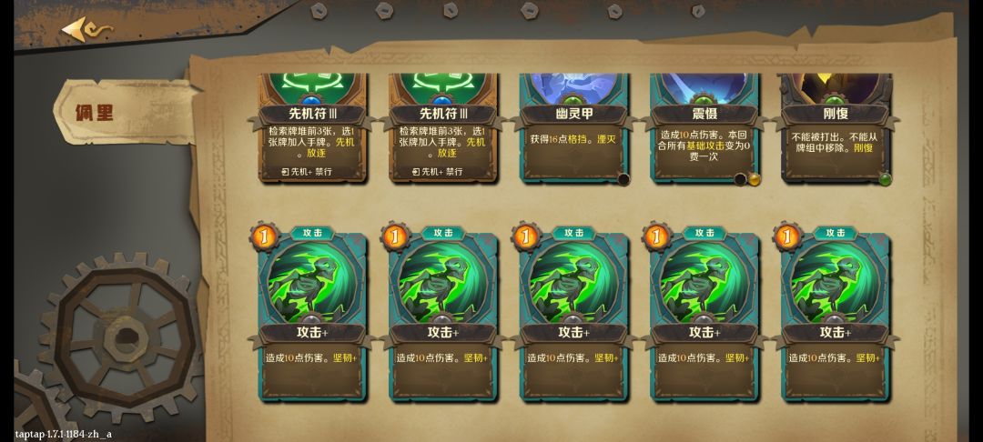 注:先机符搞不到的可以换一家了 主要技能: 快速学习(附先机符)+灵能视野(附先机符)+狂野生长(先机符,能量符:不要减灵力和中毒的)+烦扰(附先机符,要先上这个是怕第一轮能量不够用)+不朽寓言(不用附魔) 开局第一回合先放:快速学习—灵能视野—狂野生长—烦扰 之后出了不朽寓言就放(每回合开始检索抽牌堆3张牌),就能达到每回开始双倍的灵能视野(10*2的格挡)和双倍狂野成长(当前灵力*2的回血),