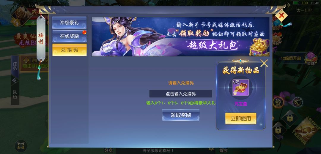 走过路过不要错过!仙侠游戏《梦回仙域》输入6个数字即可兑换礼包哦!