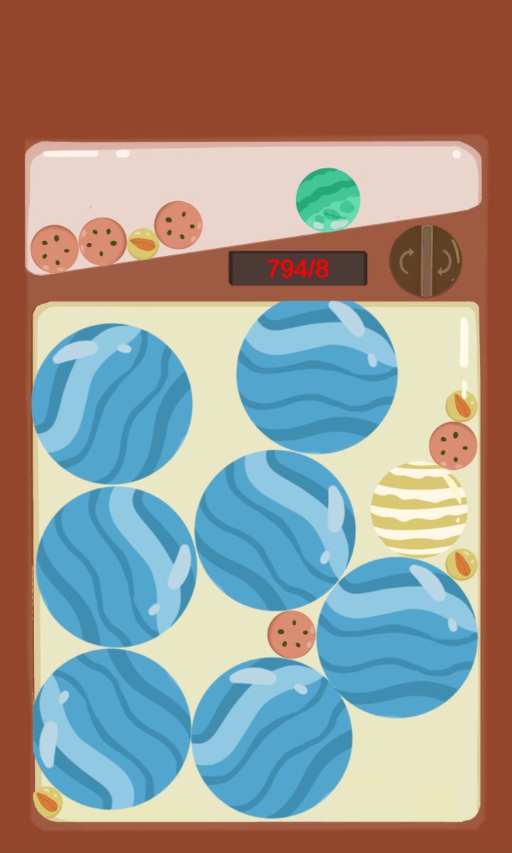 额…虽然游玩时间很短,但我手速快所以已经玩了五六局了,局局最后都是这个德行,开局俩破枣来了个黑球,最后七个蓝球都不来一个黑球?要说只有一局两局这样那我认栽,五六局局局如此?想啥呢搁这?白瞎了这么好听的合成音效