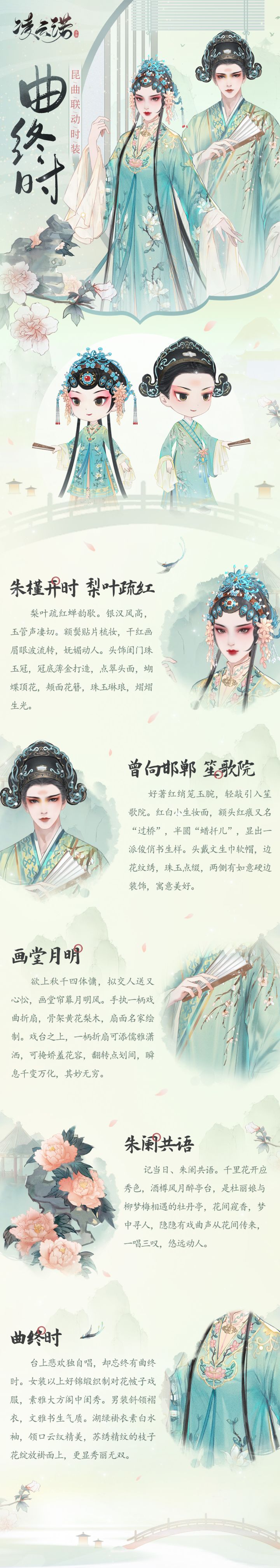 拾遗过往,笃行致远调似水磨,余音绕梁待明日,且看登台明天就是昆曲联动正式开启的日子了,关于此次联动的专属活动剧情和主题时装都在这帮宝们列出来了~