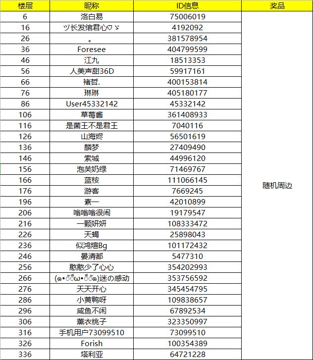 你们的雀宝来啦!对不起我又来晚了!(为什么要说又呢?总之这次的交友圈活动,本雀感受到了宝贝儿们高涨的热情(这次踩楼就不限30上限惹),虽然我开的很辛苦,但是对大家的支持,本雀还是感到十分的开心~爱你们(๑′ᴗ‵๑)I Lᵒᵛᵉᵧₒᵤ❤,那么接下来就来公布本次活动的中间名单叭~首先是10位随机中盲盒的幸运鹅,随机数如下:ID信息如下:接下来是踩楼中奖信息:恭喜以上这些小可爱,记得尽快联系官