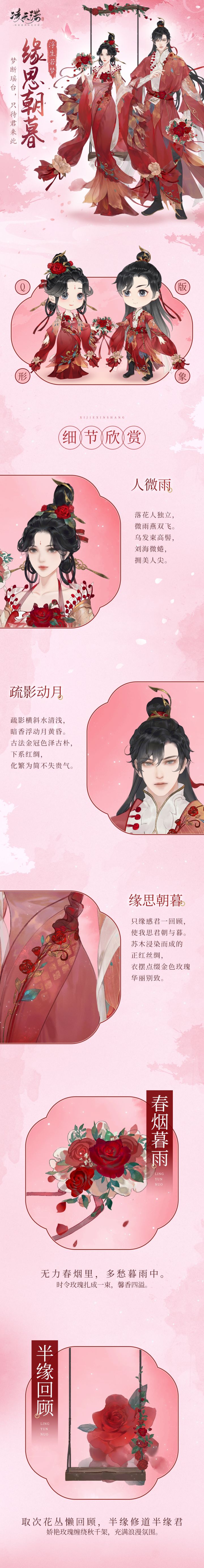 一见钟情是什么?是一见知君即断肠,还是与君初相识,犹如故人归?入我相思门,方知我相思苦这个夏天,不止有灿烂烈阳,还有这种无法名状的炽热感情以及将他们糅合在一起的全新时装【缘思朝暮】新时装将在5月20日正式上线哦~