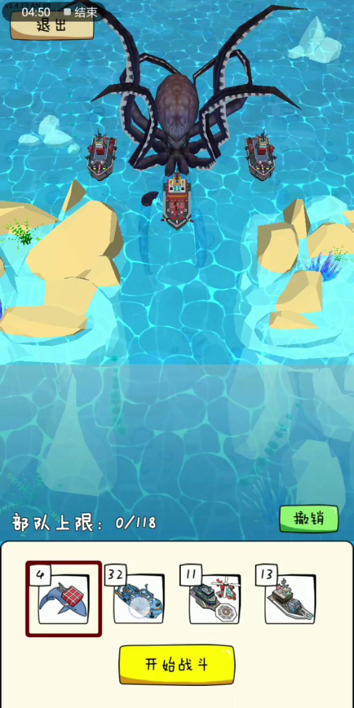 海洋时代的远征,一定要点增加中型舰*4和大型舰*2的选项呀。 中型舰可以当前排,护卫舰可以反潜,对付大章鱼召唤的特工海豚很好用,大型舰是用来打伤害的主力。敌方的导弹驱逐舰,就用战斗机航母来对付的。战斗机能击落导弹。打敌方电磁炮舰的话,就是自己(兔子)的大型舰不能被打倒。