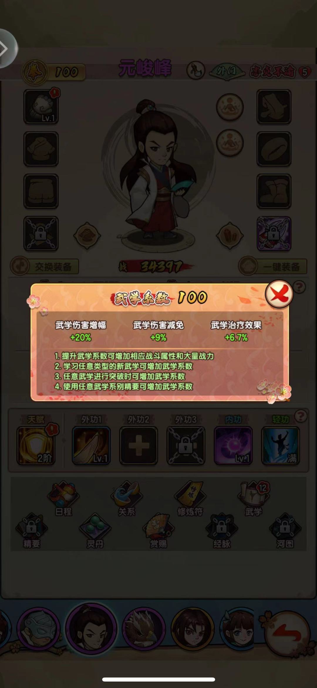 大家好,游戏公测已经一个多月了,发现很多萌新玩家,不了解武学系数这个东西,下面对武学系数详细介绍下,及如何提高武学系数。 首先,点开弟子界面左上角的数字,就可以看到上面图片所示,武学增伤,减伤和治疗效果,字面意思,很好理解。 比如说,如果你的系数很低,武学增伤很低,对面系数高,连武学减伤都比你的增伤高,那你的武学技能就打不出伤害,打的跟平a一样,所以武学系数非常重要的要,一定要弄。 怎么提高