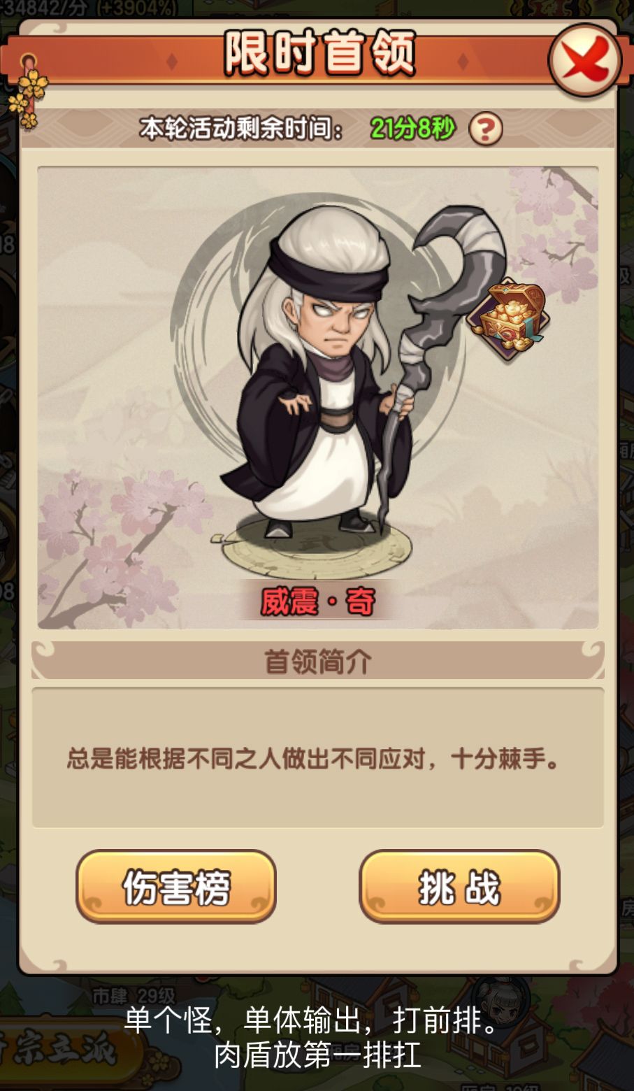 众所周之,“我要当掌门”里面《悬红密令》活动和每日boss玩法是获得元宝和星蕴石的途径,还能让你榜上有名,如何在boss活动中跨战力拿奖励,成为大佬眼中的高玩,小氪玩家的榜样,今天我就分享一些打榜的细节,非常非常之细节,有兴趣的可以往下看: 首先,两个活动的Boss特性是一样的,只是名字和造型不一样,总共有六个boss类型,每个boss打法是完全不一样的。 其次,boss是不吃任何debuff和状