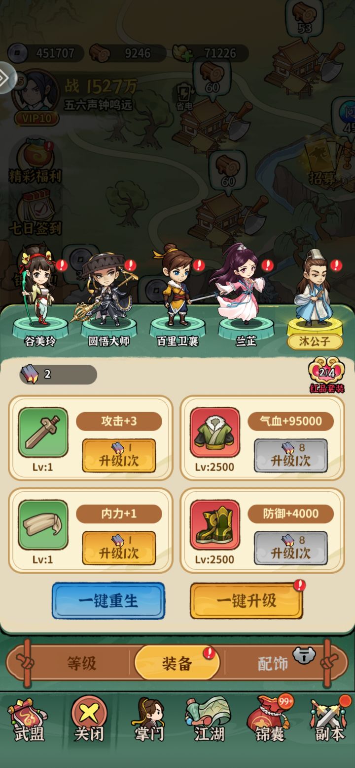 语文不是太好,写的比较乱大家随便看看就好。本人是六区的青龙会,攻略纯属个人理解要是被坑不要怪我。先感谢一下六区的大佬帝释天在游戏中给我的一些建议让少走了很多弯路。1、弟子的选择,这里我分为前期小宋,前中期大雕,中期小宝,后期童姥和杨过,前期小宋玩到50紫碎片出紫色大雕的时候就可以立刻换了无需等待,天赋碎片边玩边升,但是在大雕换成小宝时可以稍微等待一段时间不需要一出就换,主要是小宝比较吃天赋和武学,