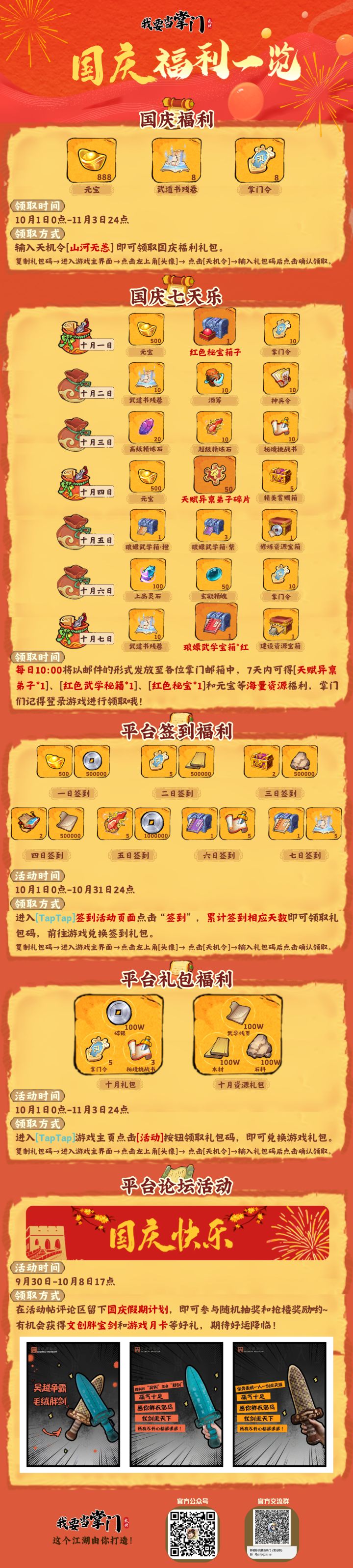 【我要当掌门】国庆节福利一览