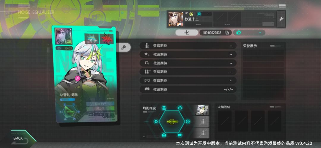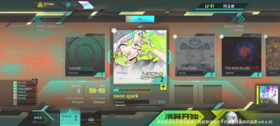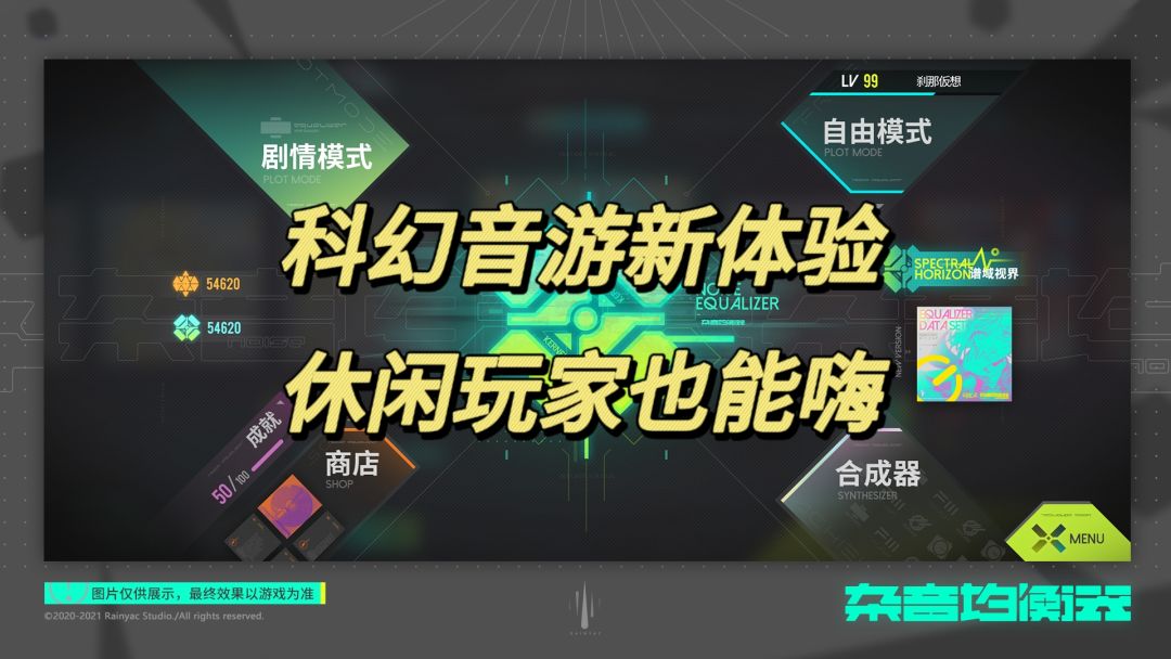 游戏测试已结束,且目前不可进入游戏,但本帖依然保留,日后公测将在此基础上进行修改 1. 什么是杂音均衡器? 引用官方的话来说:杂音均衡器是一款移动端日系近未来科幻风音乐游戏,由独立工作室Rainyac开发。Rainyac致力于打造一款音乐风格和视觉体验前卫的移动端音游,不仅为音游核心玩家,也为更宽泛的用户群带来新奇畅快的游戏体验。 如果你玩过街机音乐游戏,或对其有所了解,那么你应该对游戏内容有较强