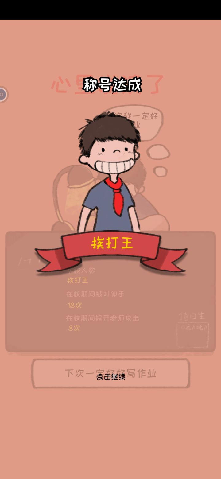 游玩感受:拍完蚊子躲手板。。。啊这,其实现在体罚现象还是有的,,,这玩意很难杜绝,游戏难度的话并不是很大,勉强拿了个“挨打王”