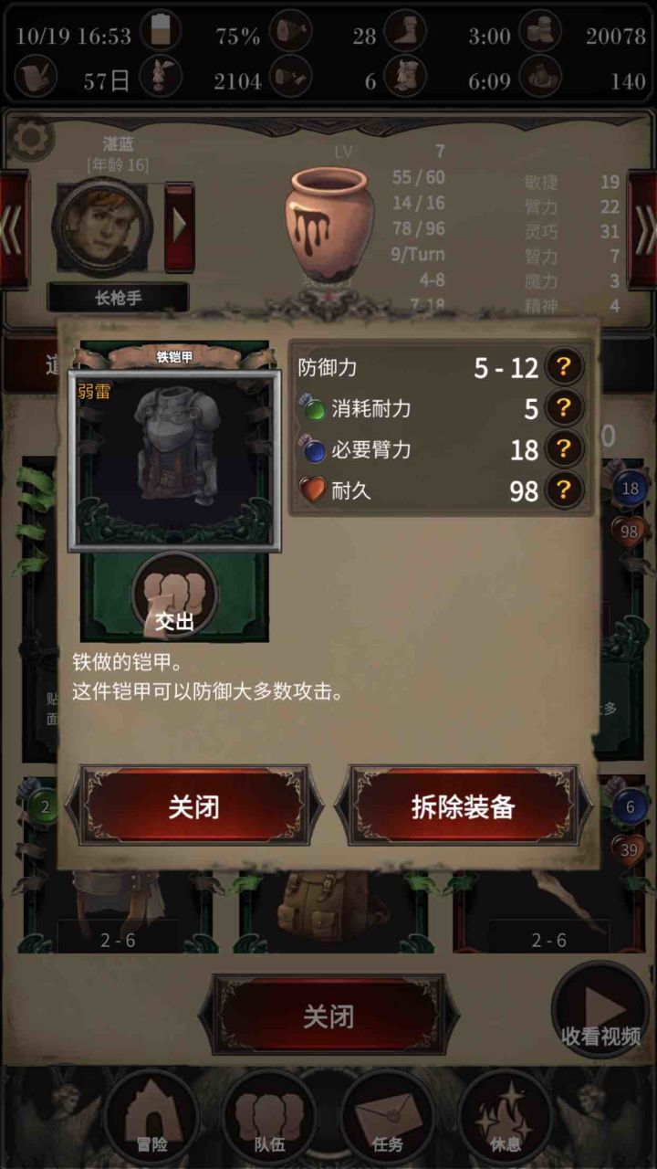 其实是挺基础的功能,可能是因为游戏内没有做成专门的新手帮助,还是有朋友会这在一块提出疑问:“我养了很久队友怎么突然跑了!”其实都是有提示的,大家玩这种沉浸式的奇幻冒险游戏还是要多看,该打听消息就打听,人物描述场景描述都看看,不用老上来就想着砍砍砍。那么性格在哪里查看?首先选择队伍然后点击对应人物的空白处我们可以看到个人面板,在这里可以选择装备,技能。查看职业信息等等,我们选择最右边的介绍好