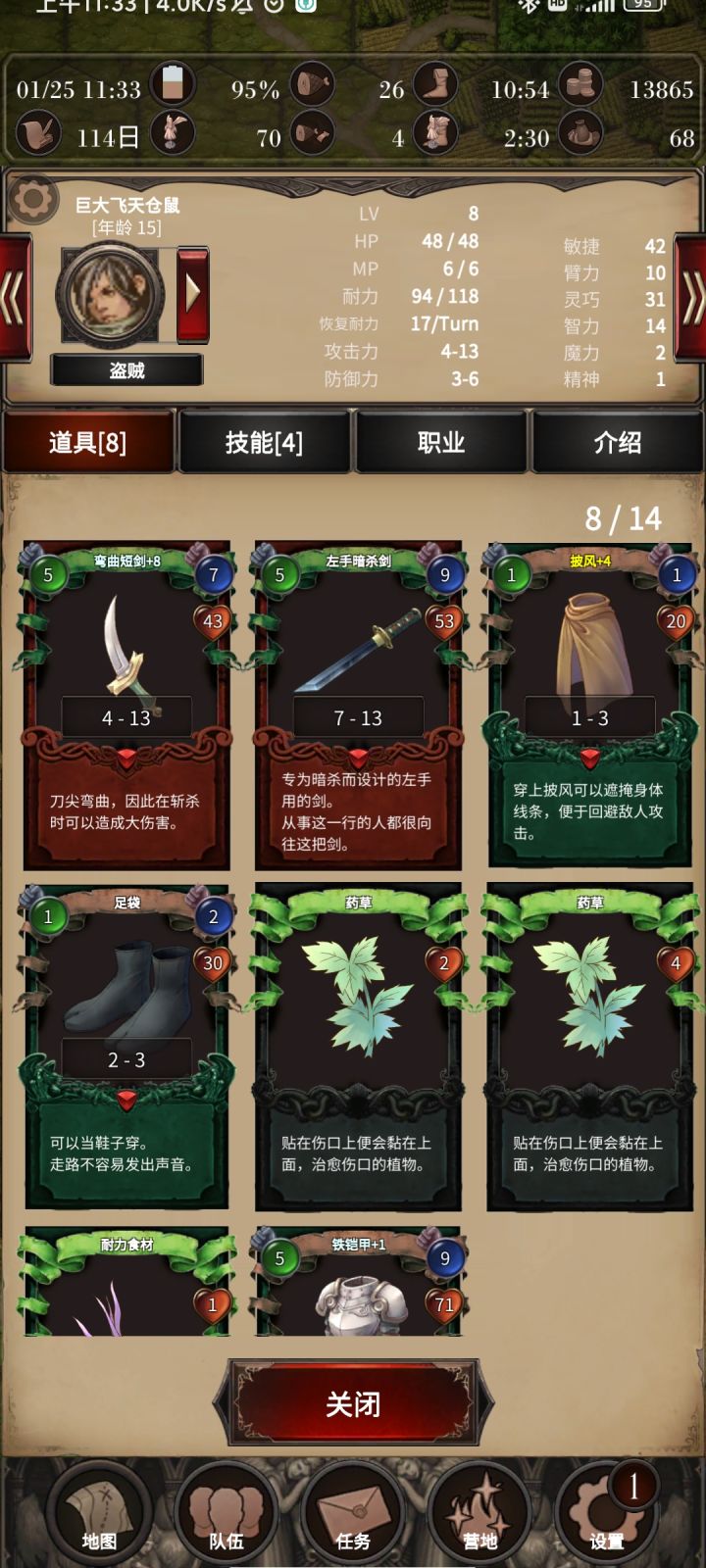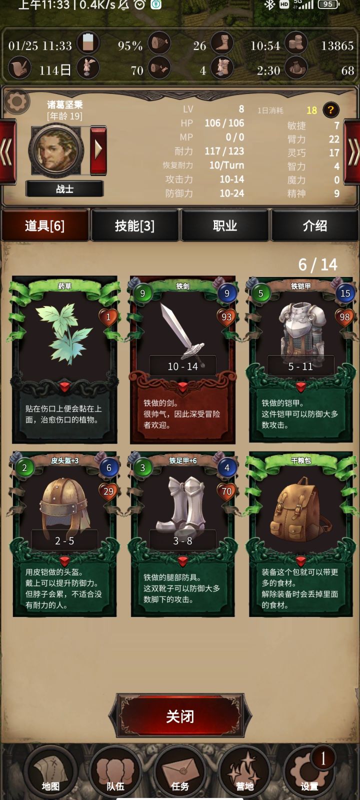 其实是挺基础的功能,可能是因为游戏内没有做成专门的新手帮助,还是有朋友会这在一块提出疑问:“我养了很久队友怎么突然跑了!”其实都是有提示的,大家玩这种沉浸式的奇幻冒险游戏还是要多看,该打听消息就打听,人物描述场景描述都看看,不用老上来就想着砍砍砍。那么性格在哪里查看?首先选择队伍然后点击对应人物的空白处我们可以看到个人面板,在这里可以选择装备,技能。查看职业信息等等,我们选择最右边的介绍好