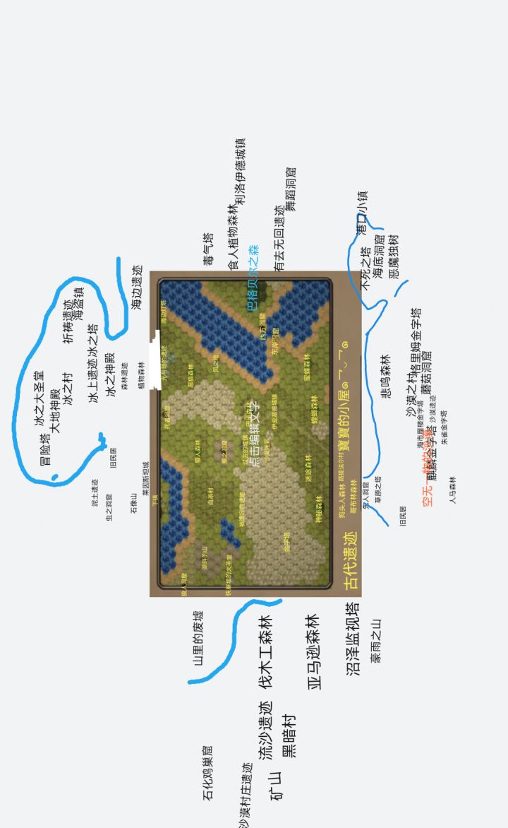 虽然只有中间大陆的,不过还是可以参考一下的重新传了一下原图,现在可以看清每格了不知为啥我传了原图还是有些糊,实在不行看下面那个这游戏群里我发的吧