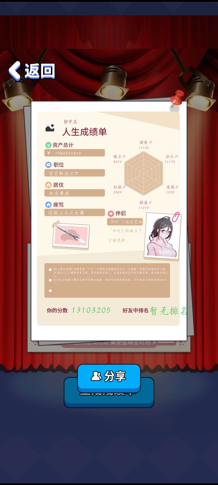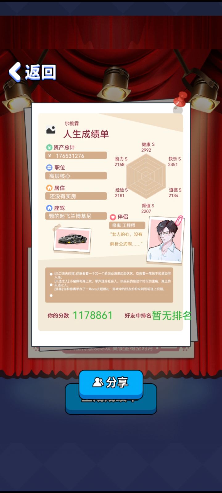 四个男的全攻略所有等级s级财产最后到两亿别问我为啥这么有钱没房子买了卖卖了买最后投资一亿忘了看周期36个月的投资周期结果开不及收回了……还有一个多亿在投资里所以说应该总共三个亿的555