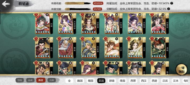 还有就是能不能增加几个武将招式啥的,那么多不同的武器肯定有着不同的使用方法,就是在战场上,武将挥舞武器的招式,而不是只会普通的平A,像什么横砍,下劈啥的不同兵种的武将有着不同的招式。再出个专属武将的招式,每个武将一种独特的招式,有额外的伤害。因为实在是不想开速战了,希望战斗的场面能够更加惊艳和华丽,玩家刚入坑想必都是因为战斗的场面还有武将的美工而入的坑,而不是五人组啥的。所以希望战斗的场面能够更加的丰富。