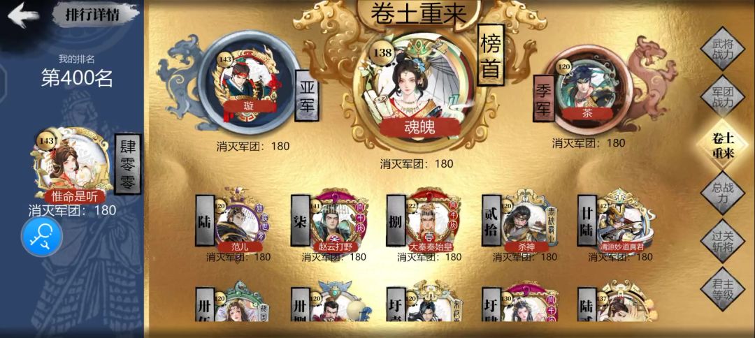 不是,新区的这么懒惰,我这几年前的都三天打完了,那时候还没现在这么多福利,制约我速度的是将,懂吗,手上没几个金将,几个金加一堆紫都三天